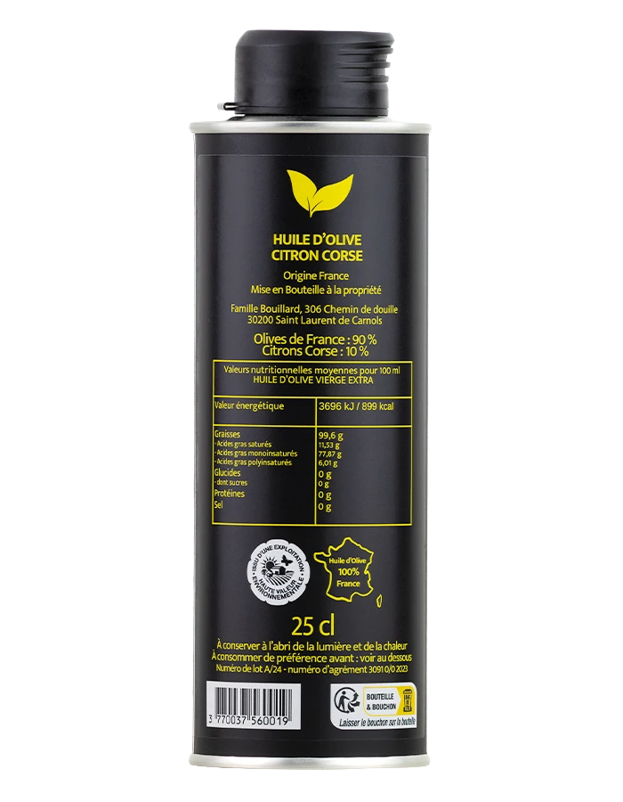 Huile d’olive au citron frais de Corse